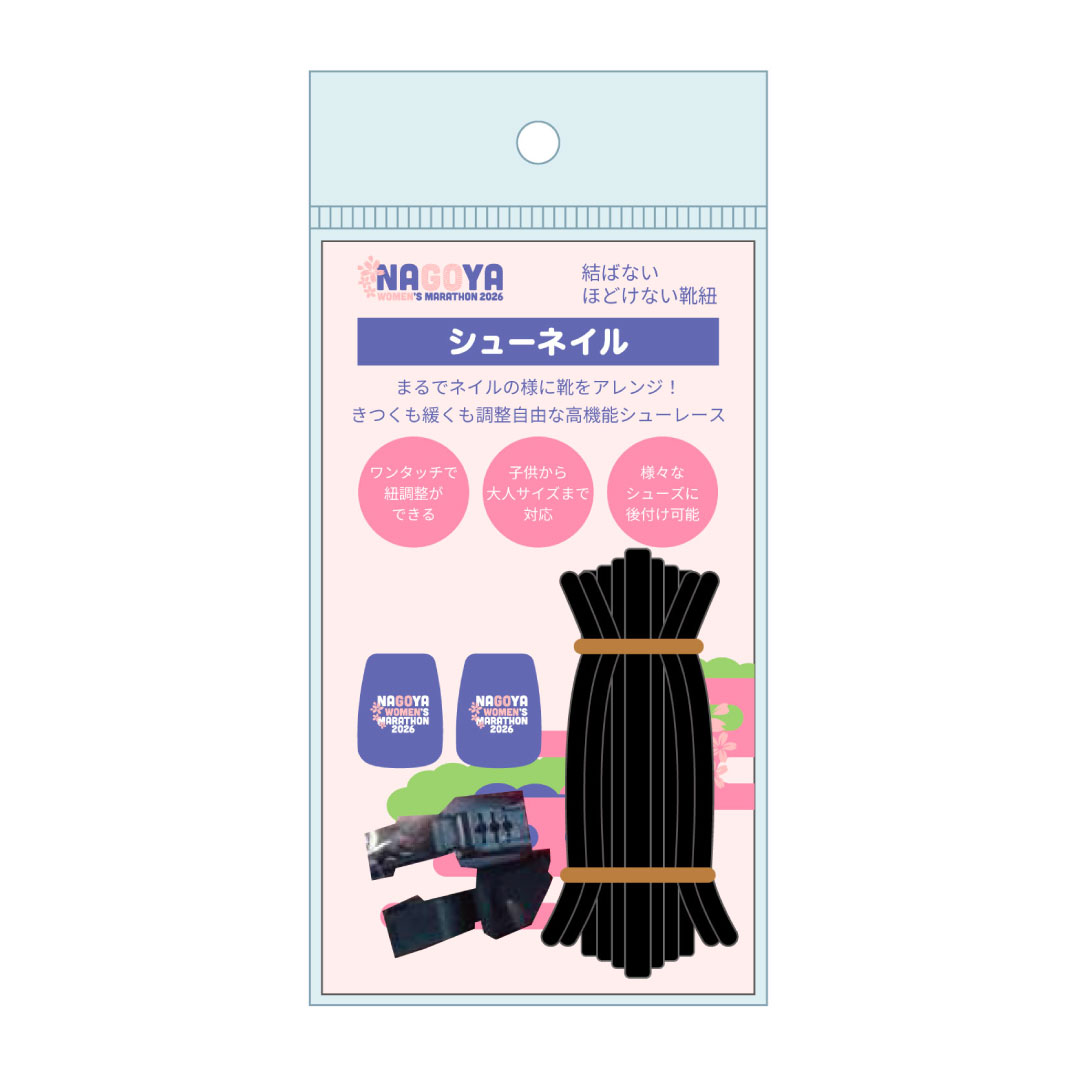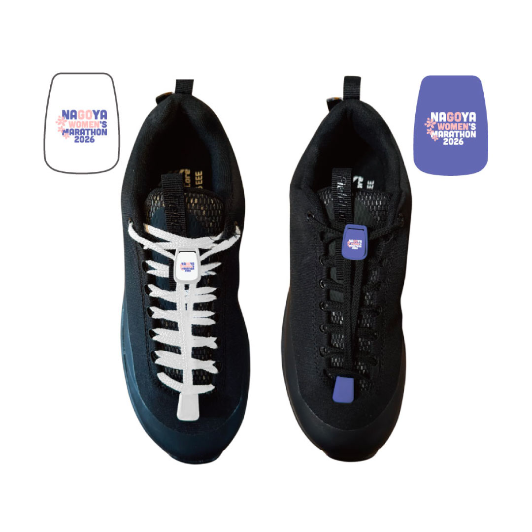 名古屋ウィメンズマラソン2026のロゴをデザインした結ばない・ほどけない・調整自由な靴紐。